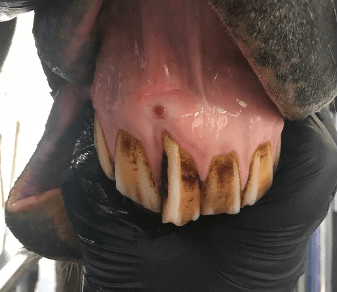 So, what are some signs to look for? Each horse has a different way of displaying the pain associated with EOTRH. Some horses will continue on like nothing is wrong, despite having advanced disease. Others will stop eating or start resisting the bridle, or just start acting cranky. A common test is what we call “the carrot test.” Offer your horse a carrot to bite. If he bites through it with no problem, it’s all good. But, if he starts to hesitate or can’t bite through it, this is a sign that his teeth hurt and he may have EOTRH. Some owners notice pustules forming on the gums and/or gingival recession. This is due to infection surrounding the tooth. The gums can also look bumpy or swollen if there is hypercementosis associated with the disease. Sometimes, we don’t know they have it until they break a tooth and we take an X-ray.
